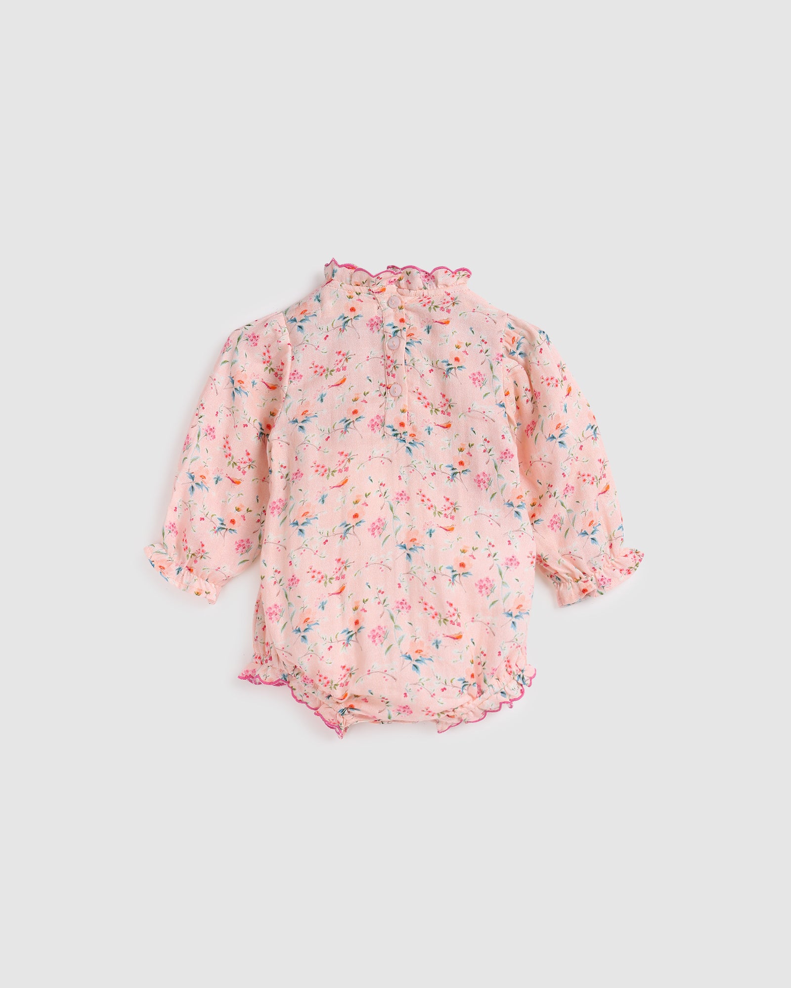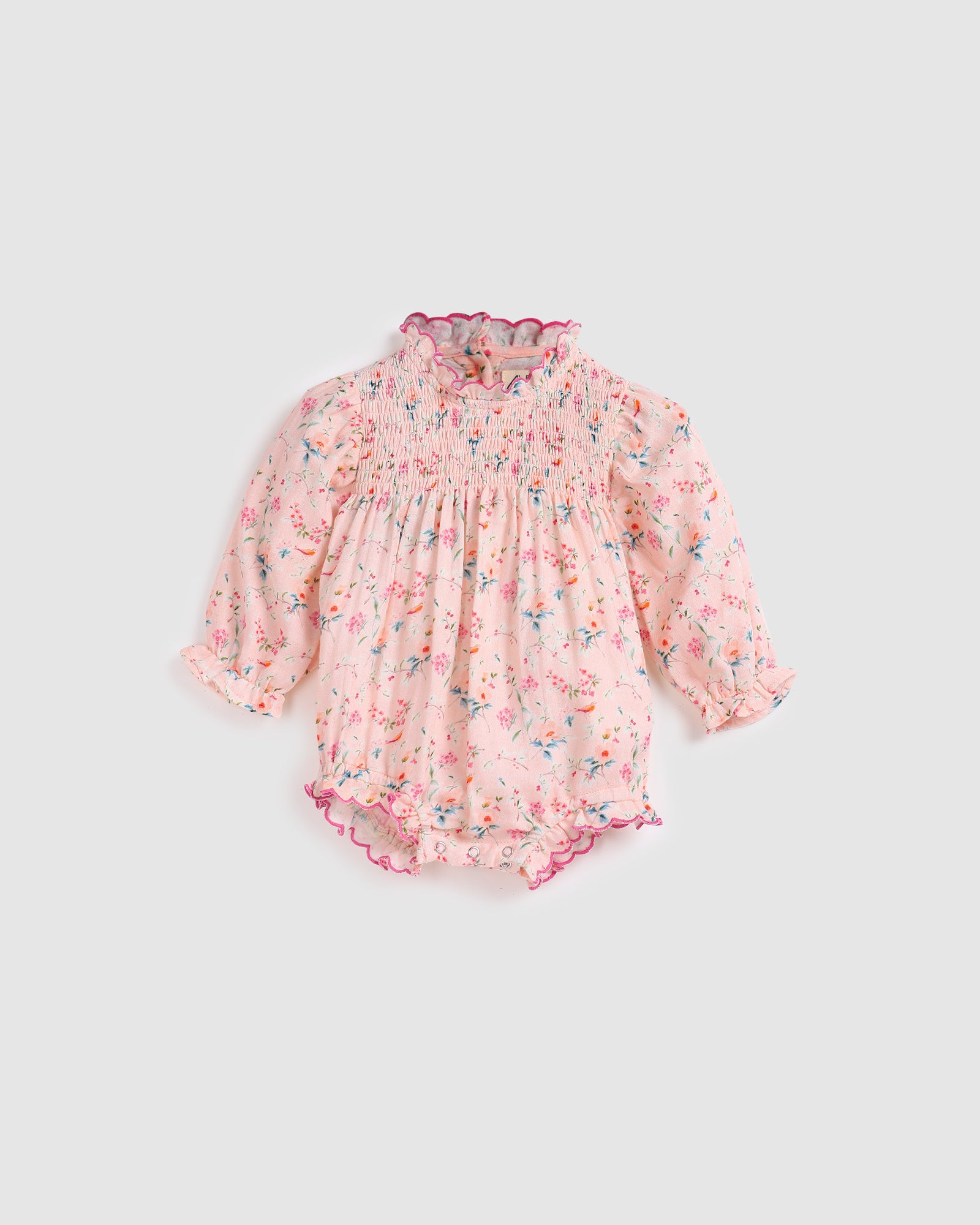 breezy fit that's both comfortable and stylish.- Length: 40cm (6-12m)- Soft cotton with bird print- Elastic neckline with scallop embroidery- Full gathered body and sleeves
