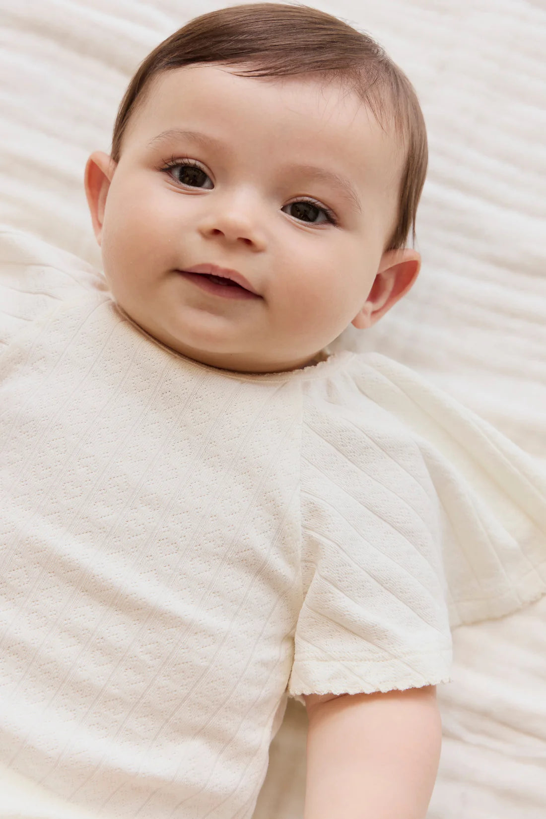 Organic Cotton Josephine Playsuit - Sweet Heart Pointelle Parchment