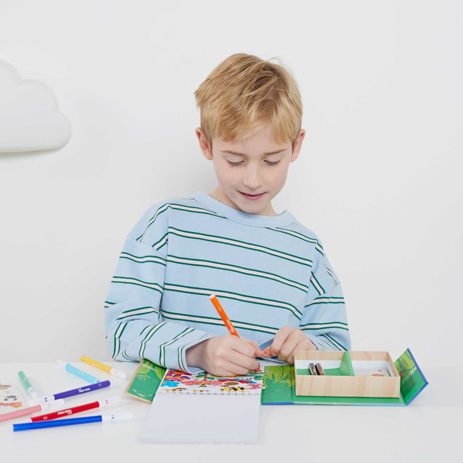 - Each set contains 24x page drawing guide with visual instructions, 36x page gridded sketch pad, 9 coloured pencils, 1x HB pencil, sharpener and eraser