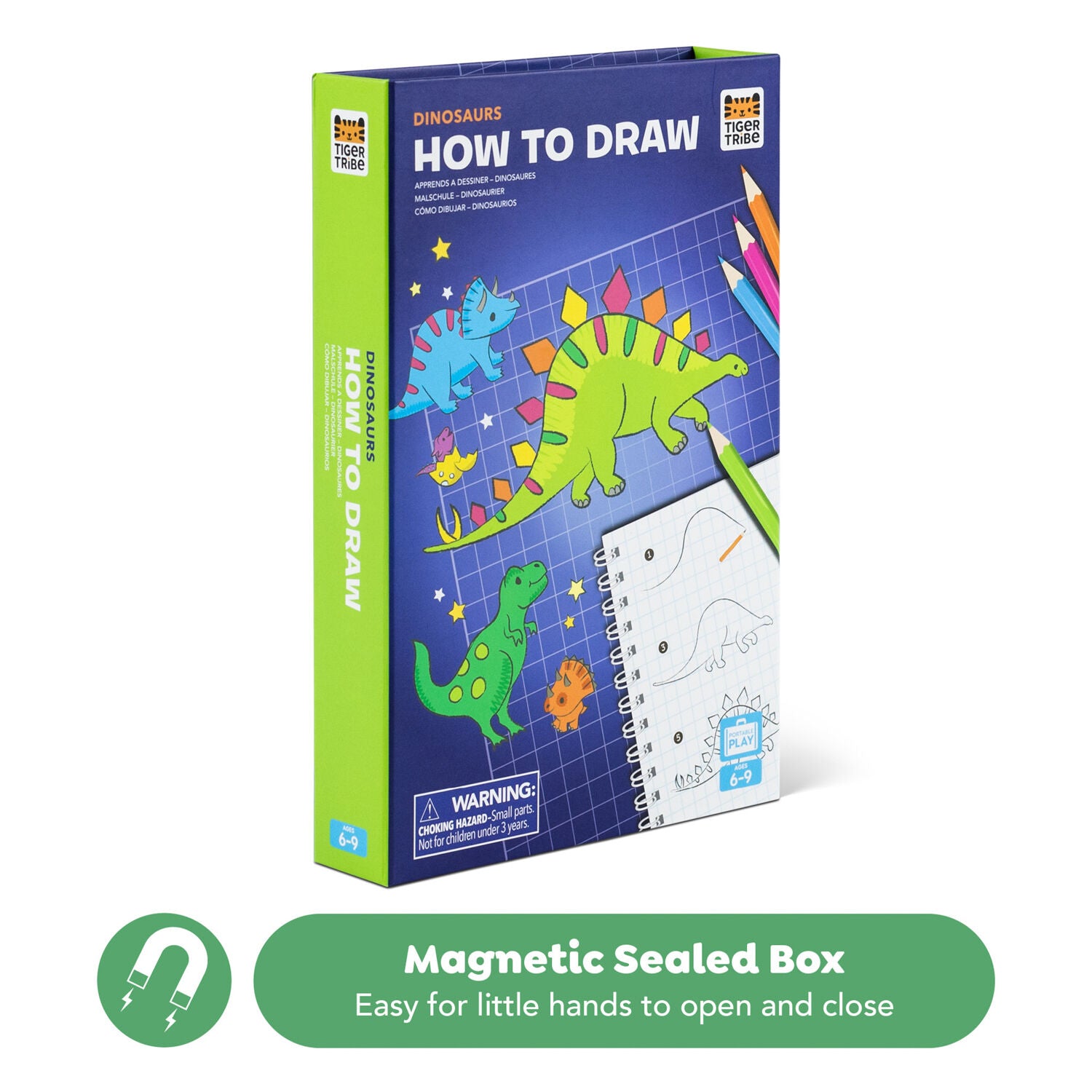 - All-in-one activity set teaching kids how to draw dinosaurs