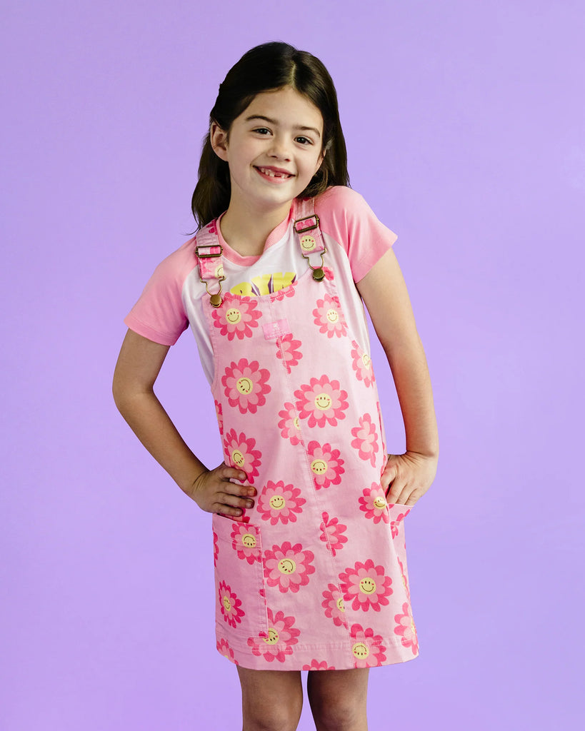 The Lola Pinafore Dress in Pink Daisy is a playful and practical choice for girls. Crafted from soft cotton with an all-over Daisy Smile print, it features adjustable shoulder straps and two large side pockets - perfect for layering over tees or dresses for everyday fun.