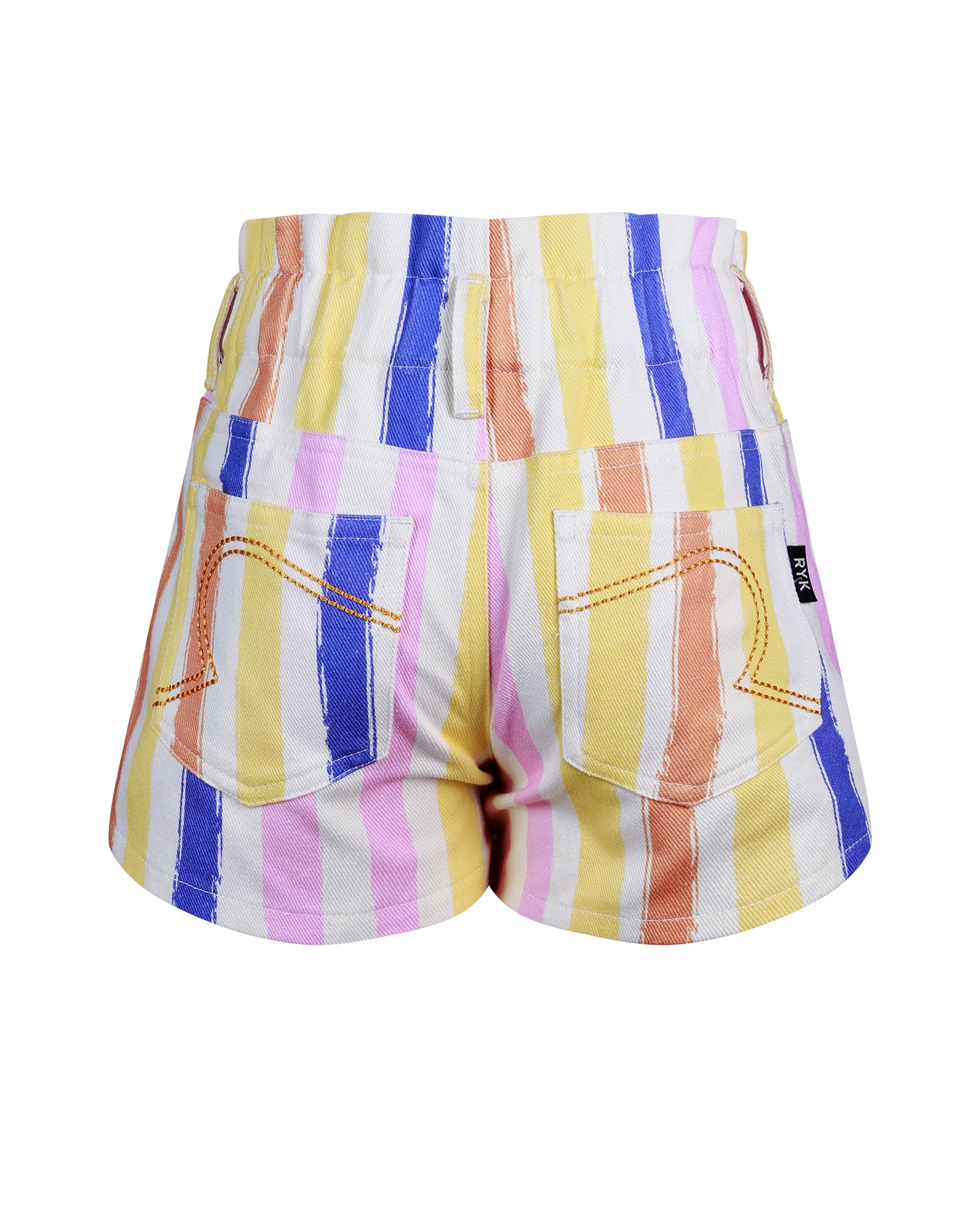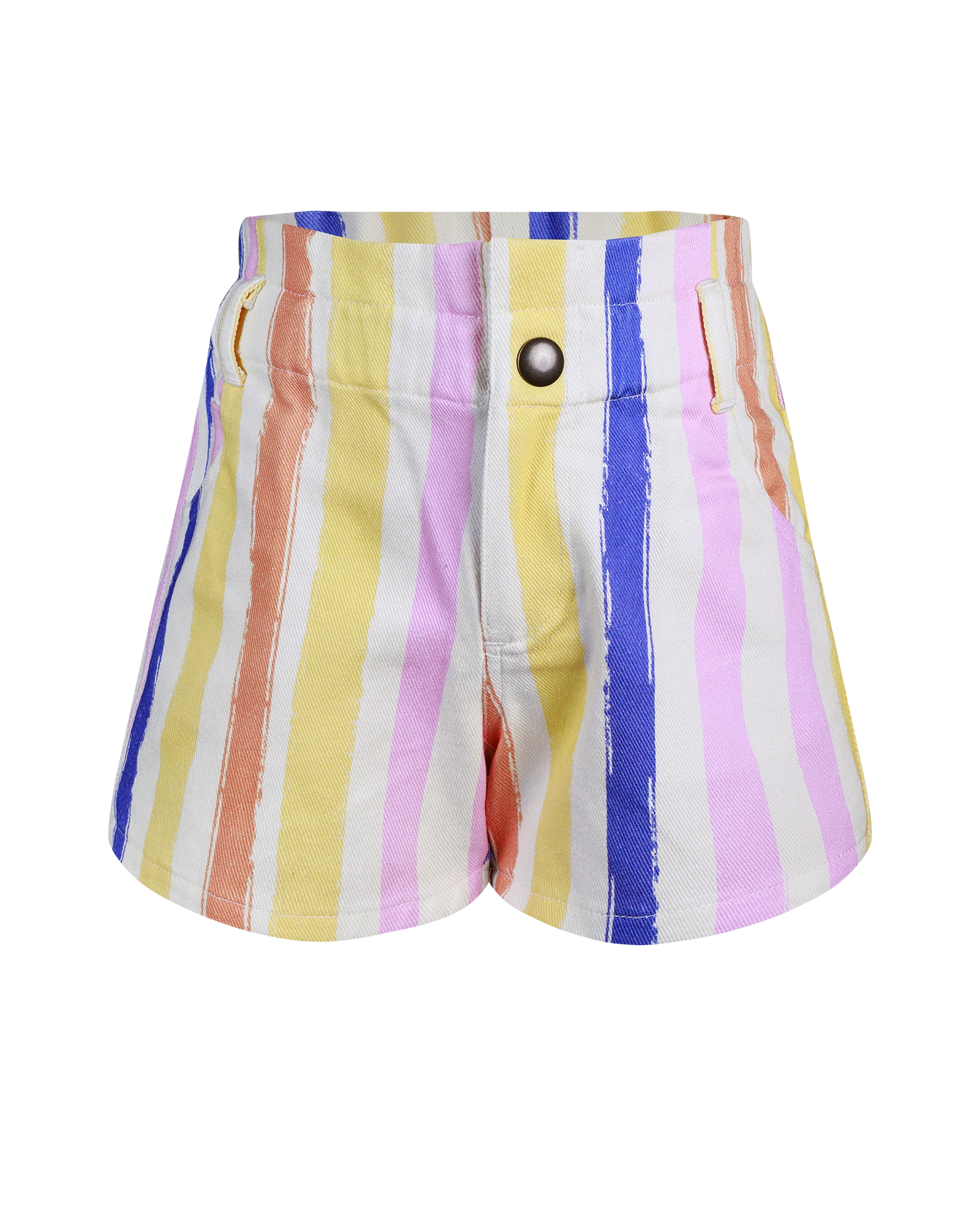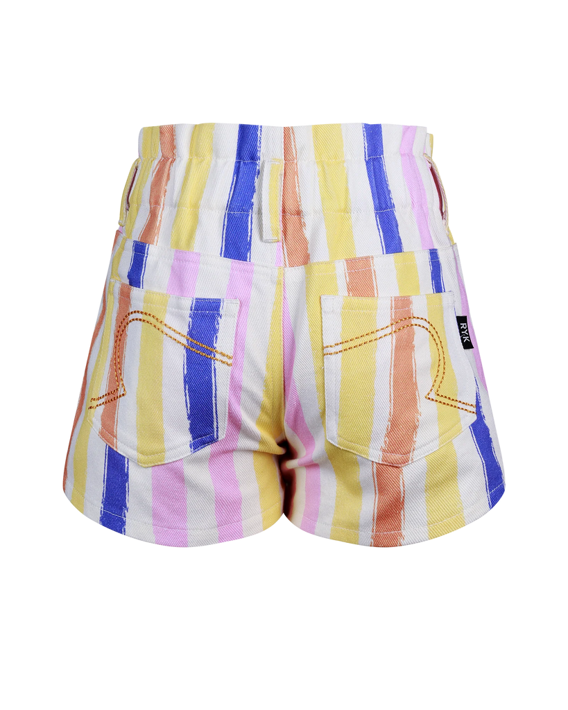 Add a pop of colour to their summer wardrobe with the Stripe Summer Woven Short. Soft cotton drill and a vibrant multi-colour stripe design make these shorts a playful summer essential, complete with a comfy paper bag waist and functional pockets.