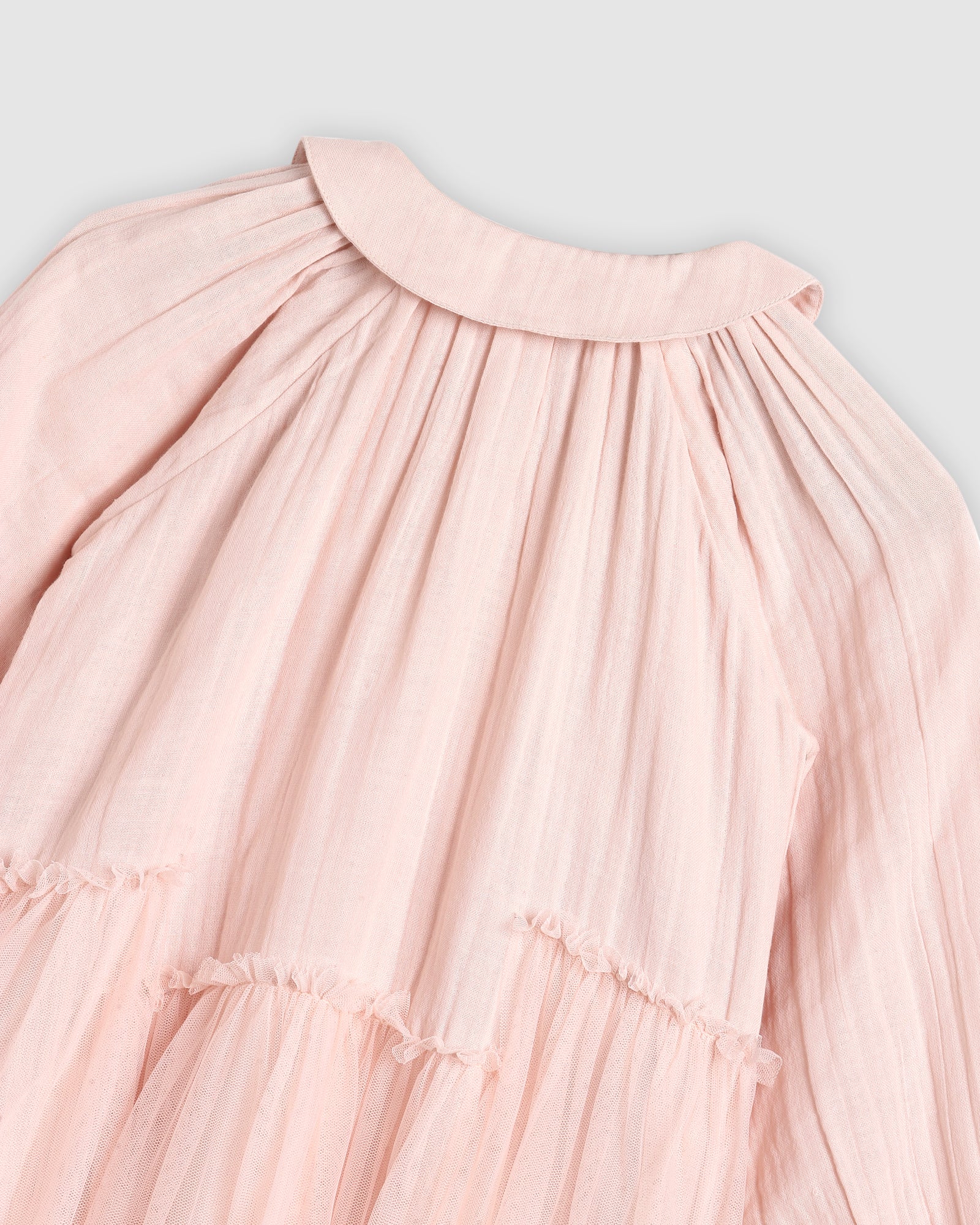 and comfortable.- Length 60 cm ( Size 6 )- Made from soft cotton gauze and tulle- Cute puffy sleeves- Gorgeous button collar