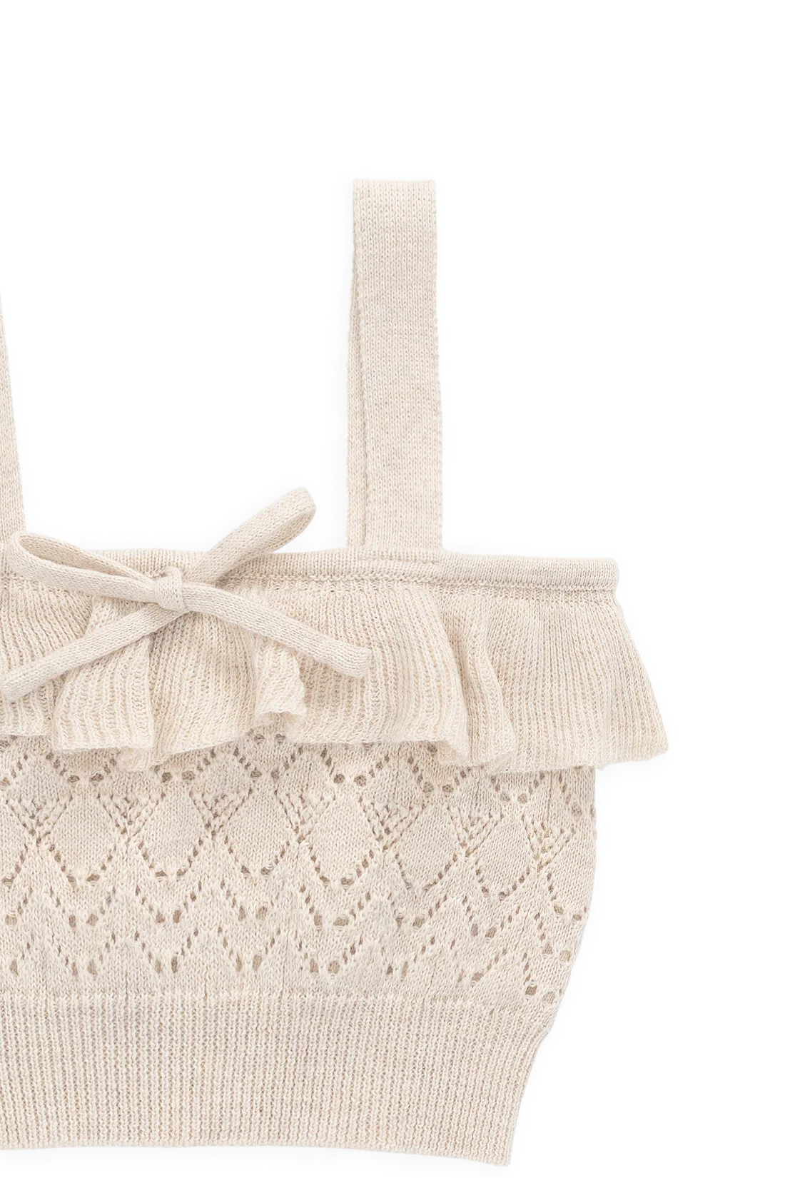Add a touch of delicate charm to your little one’s wardrobe with our Melanie Top in Light Oatmeal Marle. Featuring a soft knit texture, ruffle trim, and dainty tie bow, this piece is perfect for layering or wearing on its own for a dreamy, timeless look.