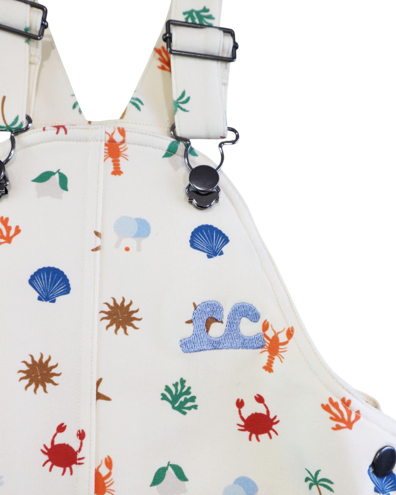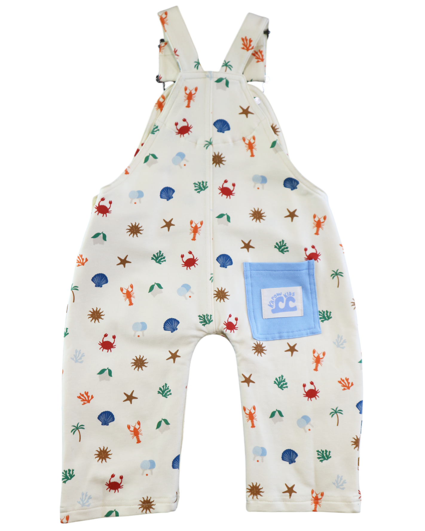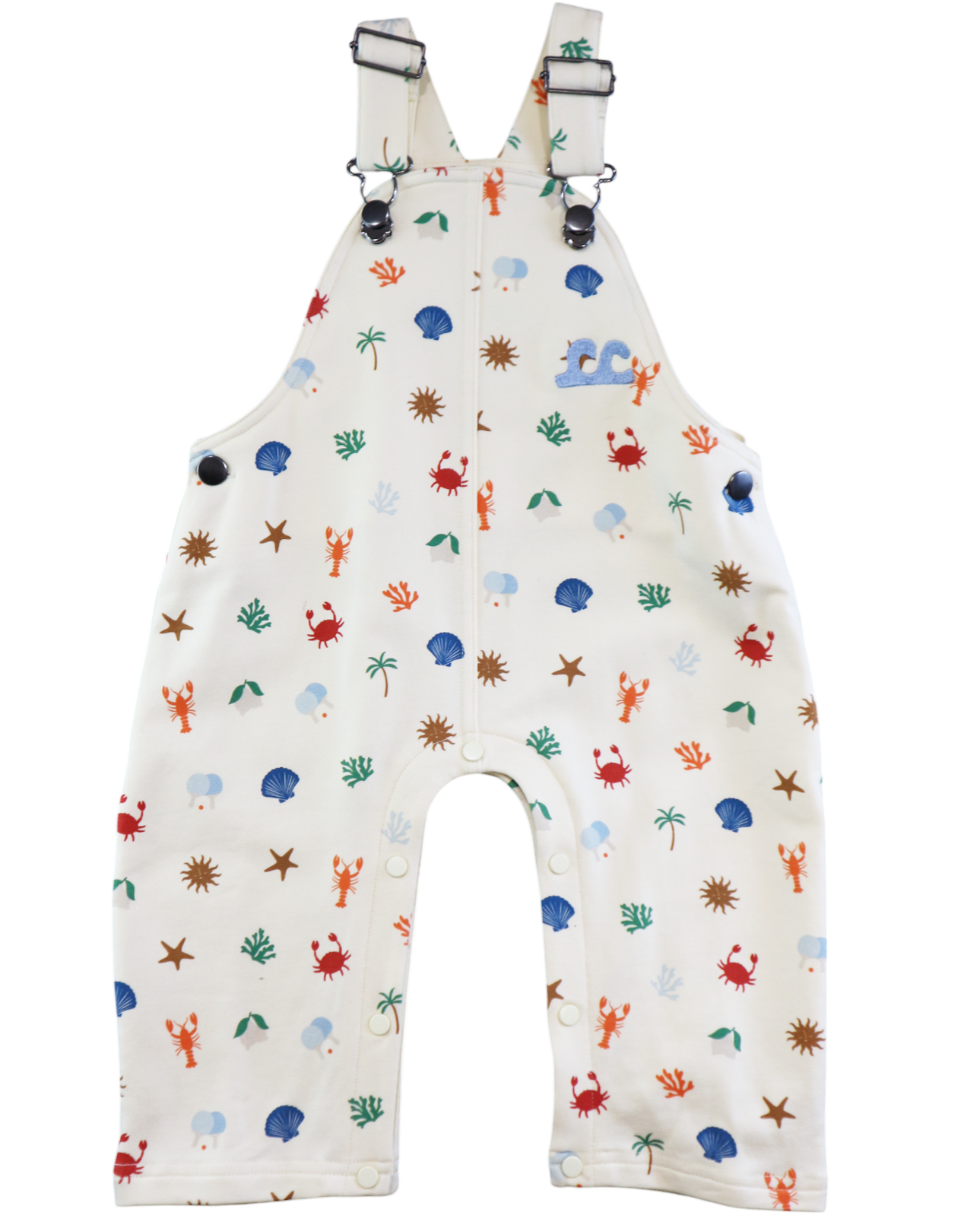 Dive into seaside style with these cosy sweatshirt overalls featuring adorable crab, starfish, lobster and shell motifs! Soft, snuggly fabric makes them perfect for beach days or casual hangouts, while the fun ocean-inspired motifs spark imagination and wanderlust. The comfy fit and adjustable straps mean they'll keep up with your little explorer through countless adventures. Whether building sandcastles or just soaking up the summer vibes, these overalls are a beachy-keen wardrobe must-have that'll have them grinning from ear to ear. Designed in Melbourne, Australia, made ethically and slowly in China 95% cotton, 5% spandex french terry fabric. Adjustable overall straps. Snaps at crotch. Slouchy fit. Back pocket