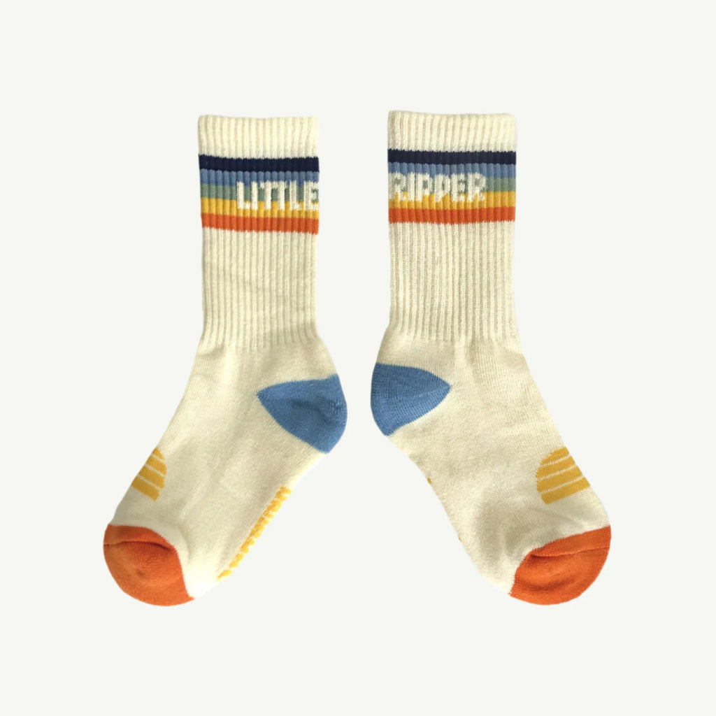 Make sure your little adventurers’ feet stay cool and comfy from heel to toe with the Little Ripper Organic Cotton Crew Socks in Rainbow. Super soft yet durable, these socks are made to handle every bounce, run, and giggle-filled adventure.