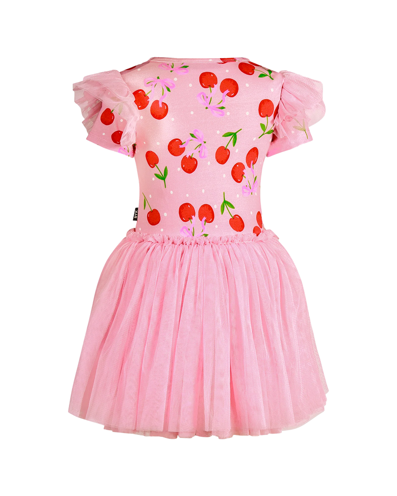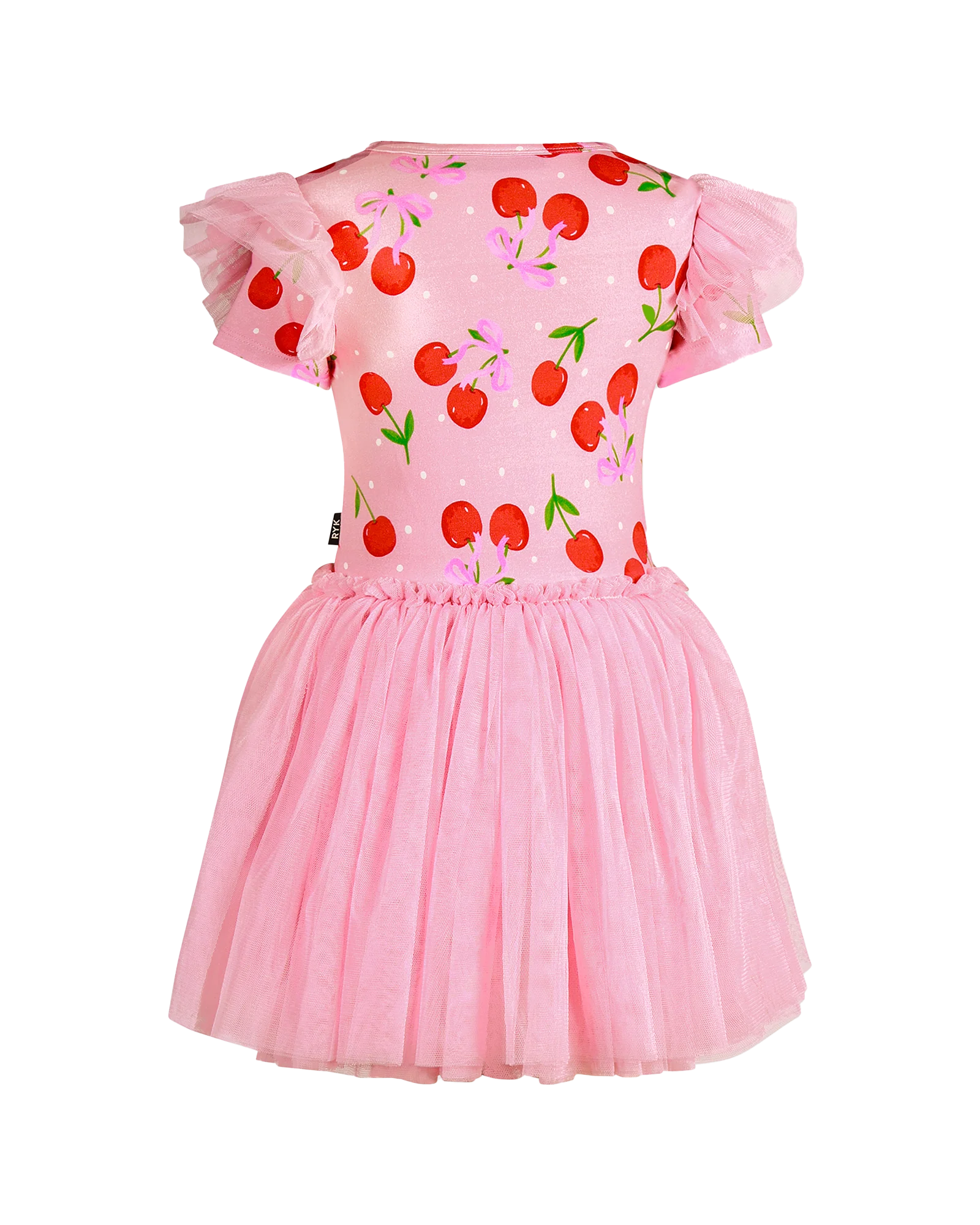 The Polka Cherry Short Sleeve Circus Frill Dress is a playful summer favourite for girls. Featuring a soft jersey bodice with polka dot and cherry print, delicate frill sleeves, and a layered pink tulle skirt, this dress is perfect for twirling, playdates, and special occasions.