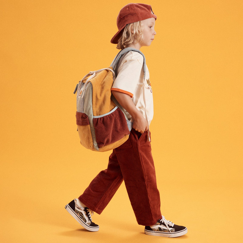 Made from organic cotton corduroy and lined with recycled polyester, mother earth will love this colourful backpack as much as your rad kid!