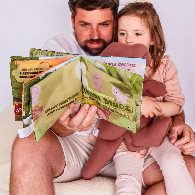 The Dino Tongue Twisters Fabric Bathtime & Naptime Book by Tikiri is a delightful and educational storybook designed for bath-time and nap-time, featuring colourful illustrations of animals and numbers that make learning enjoyable for young children. Made from durable, water-resistant fabric, this book is safe for use in water and easy to clean, ensuring it withstands the rigors of playtime. It effectively fosters early literacy and numeracy skills while encouraging a love for learning. With its lightweight and portable design, it's perfect for on-the-go fun, making it an ideal companion for children from birth. This engaging book promotes interactive play and supports developmental growth, making learning a joyful adventure.